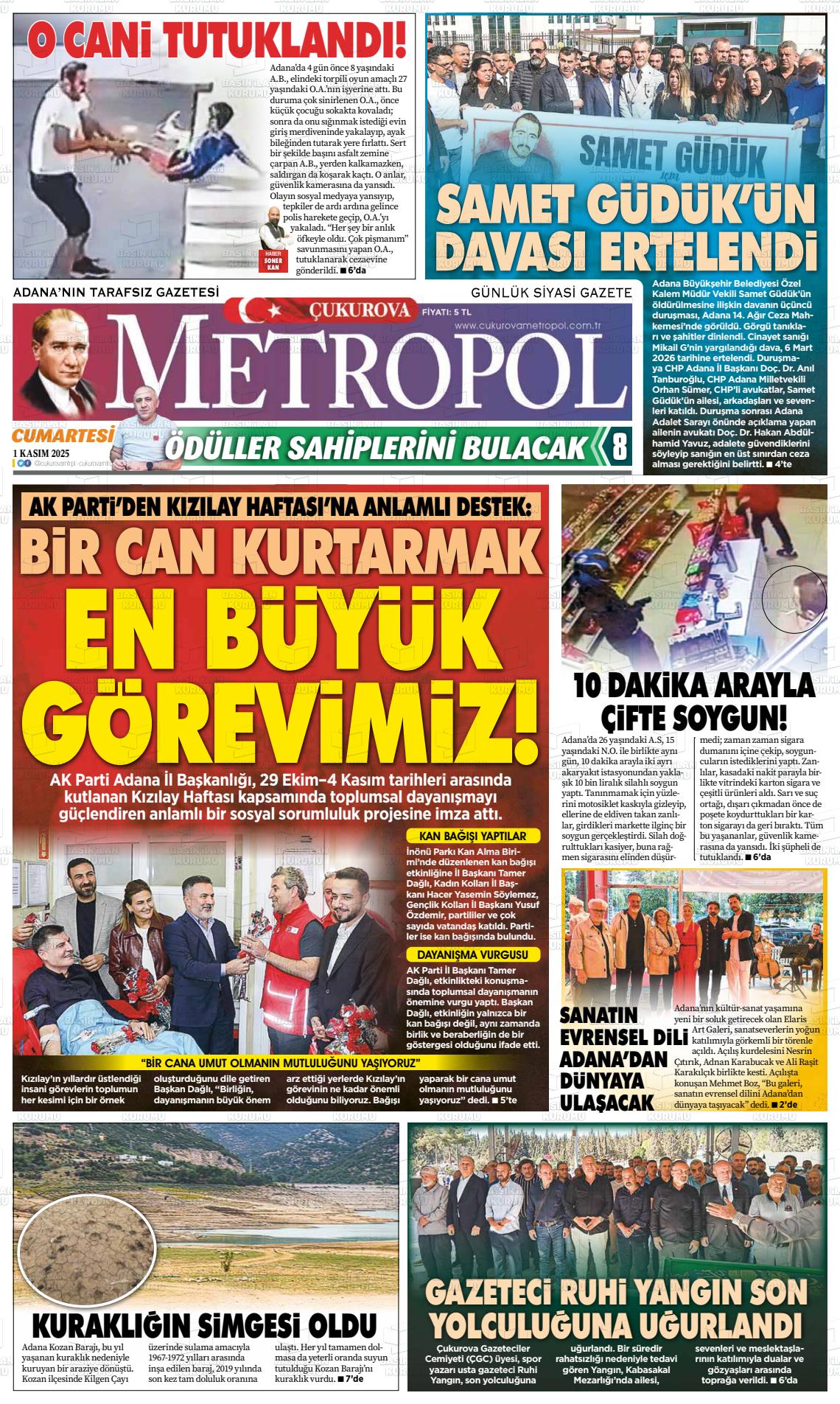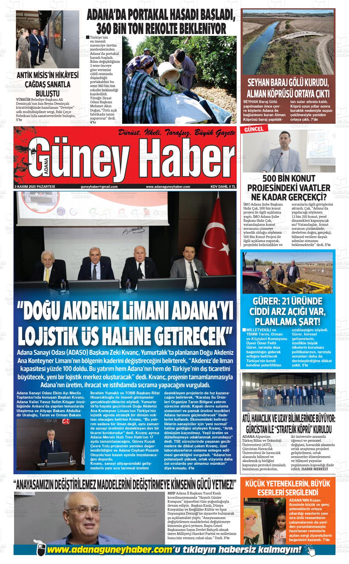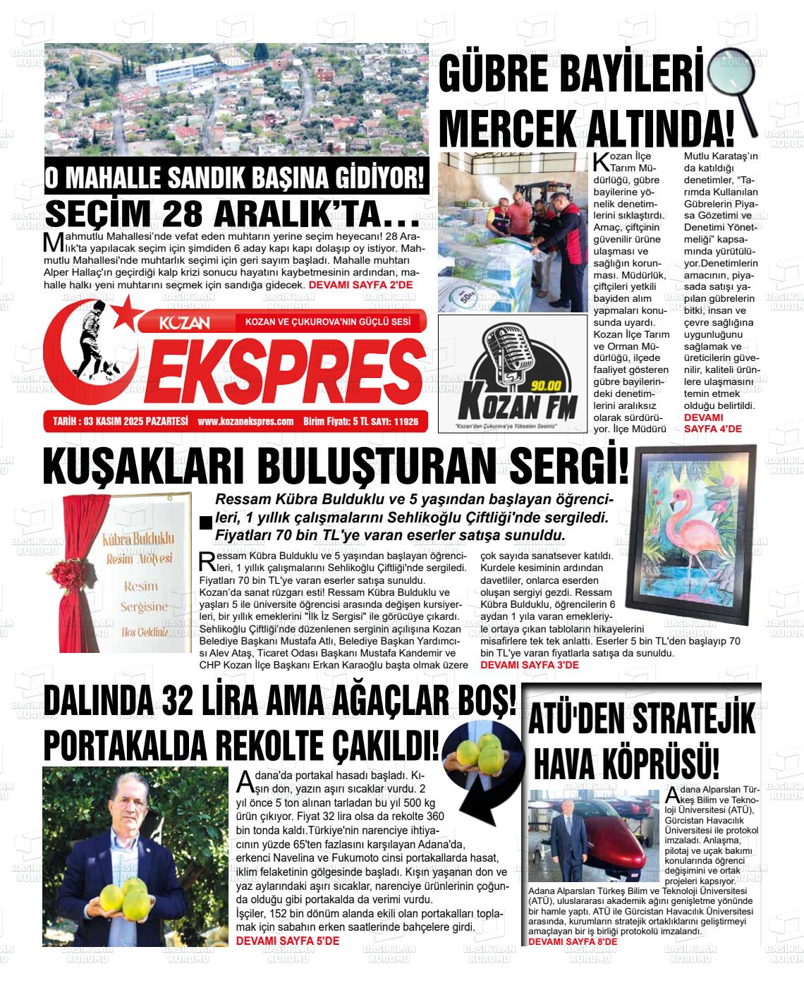 Aksaray Yerel Gazeteleri 02 Kasım 2025, Pazar Günü Manşeti