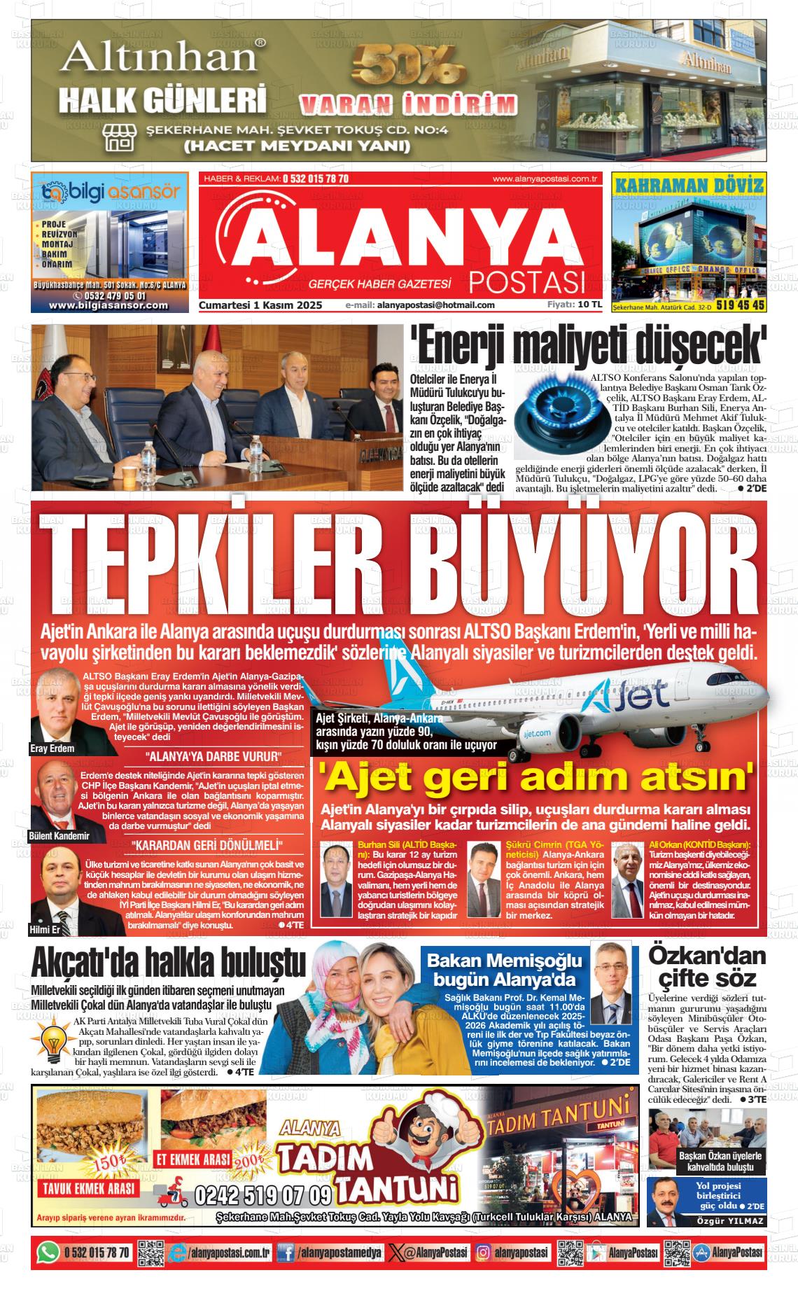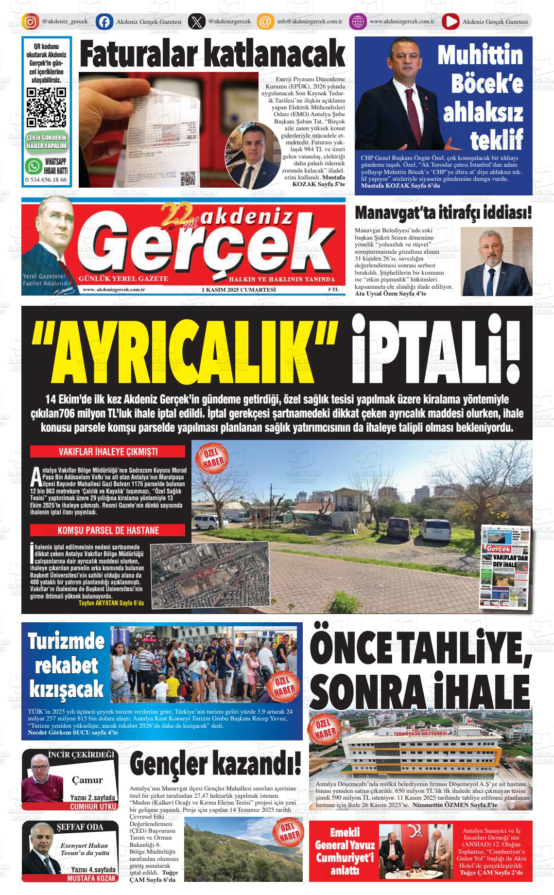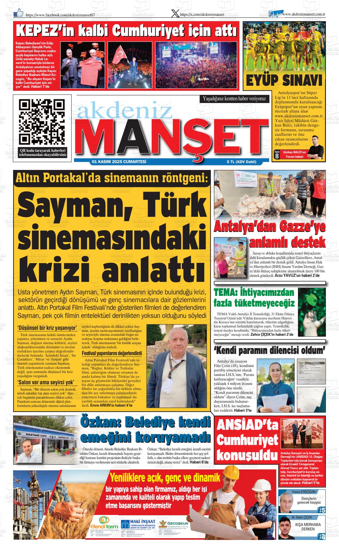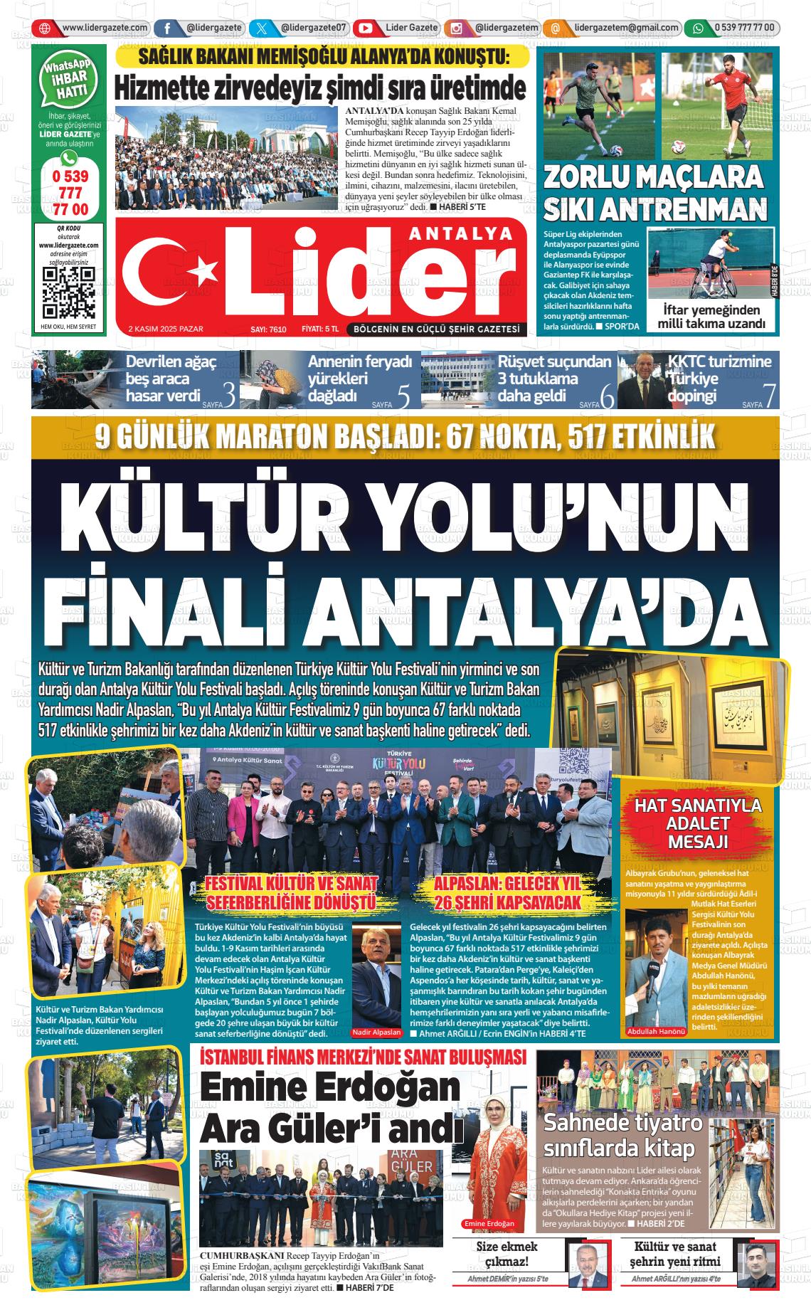 Antalya Yerel Gazeteleri 02 Kasım 2025, Pazar Günü Manşeti