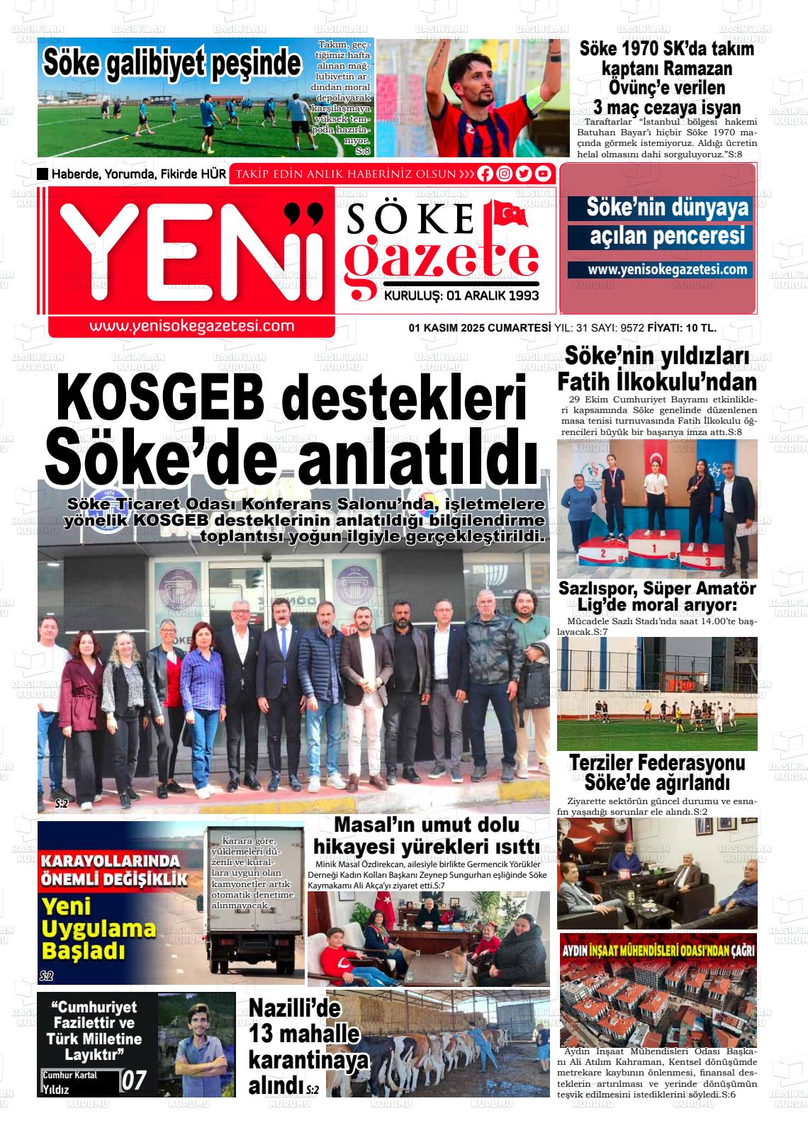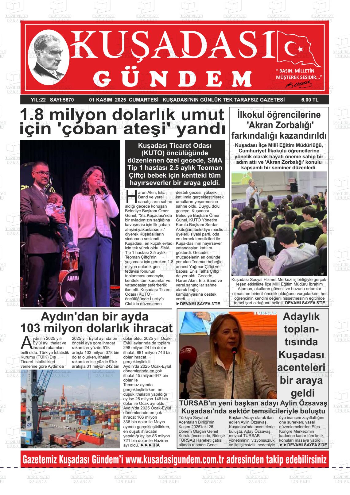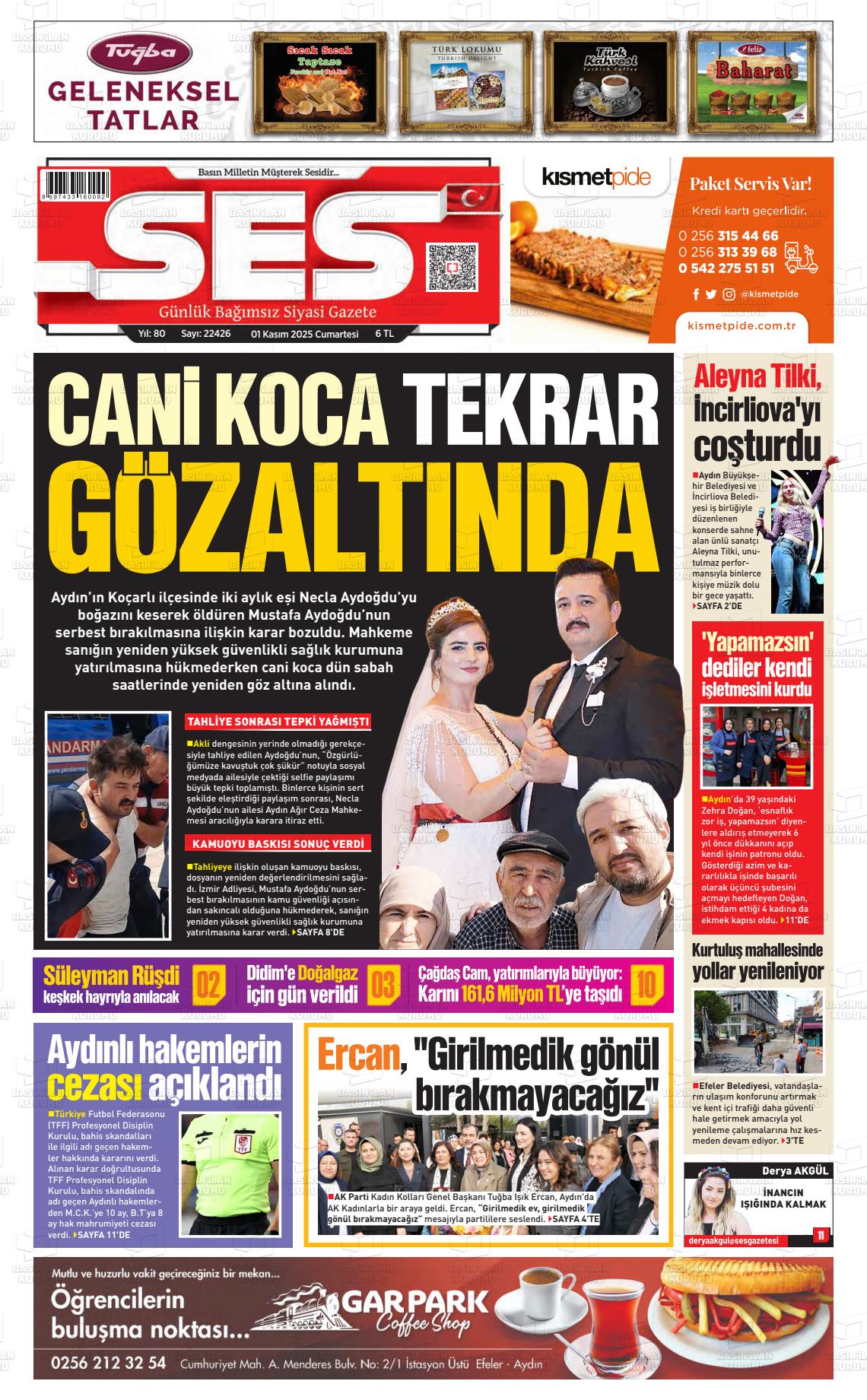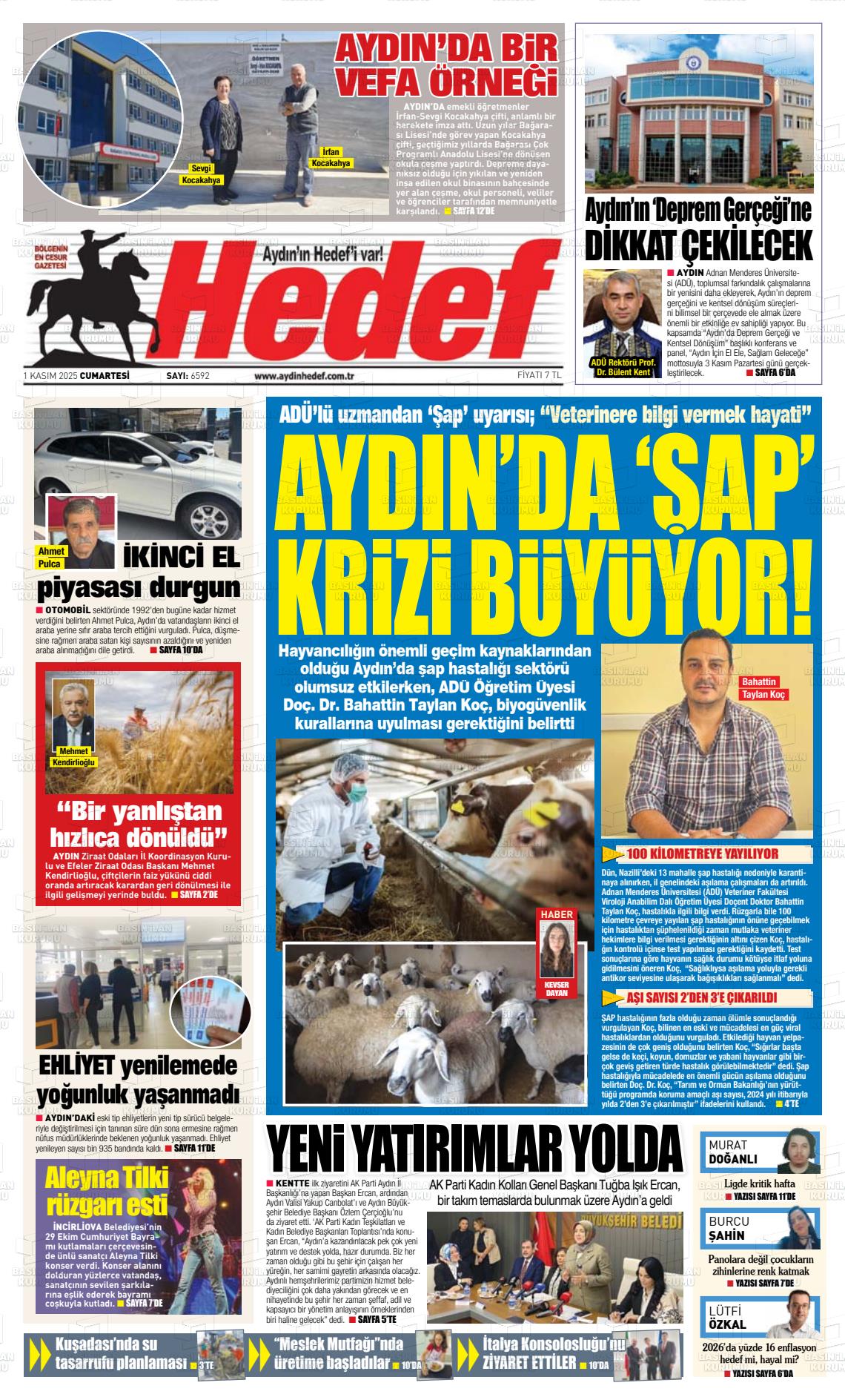 Aydın Yerel Gazeteleri 01 Kasım 2025, Cumartesi Günü Manşeti