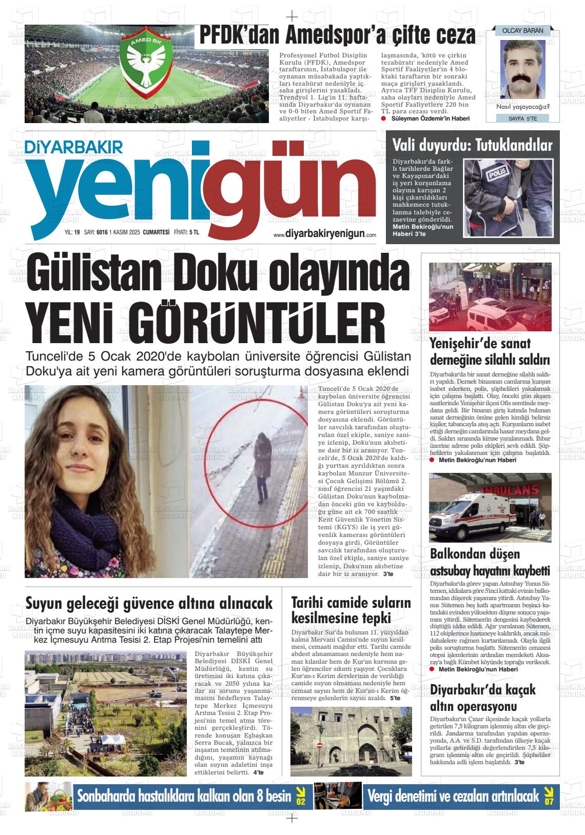 Dİyarbakır Yerel Gazeteleri 03 Kasım 2025, Pazartesi Günü Manşeti