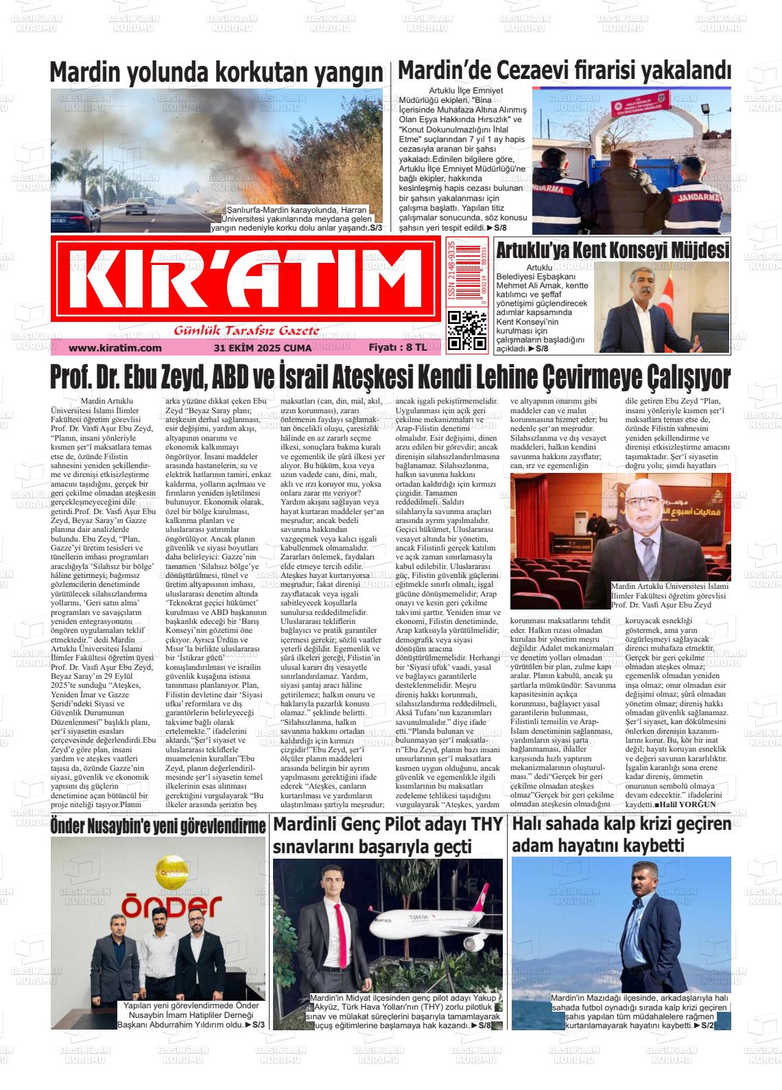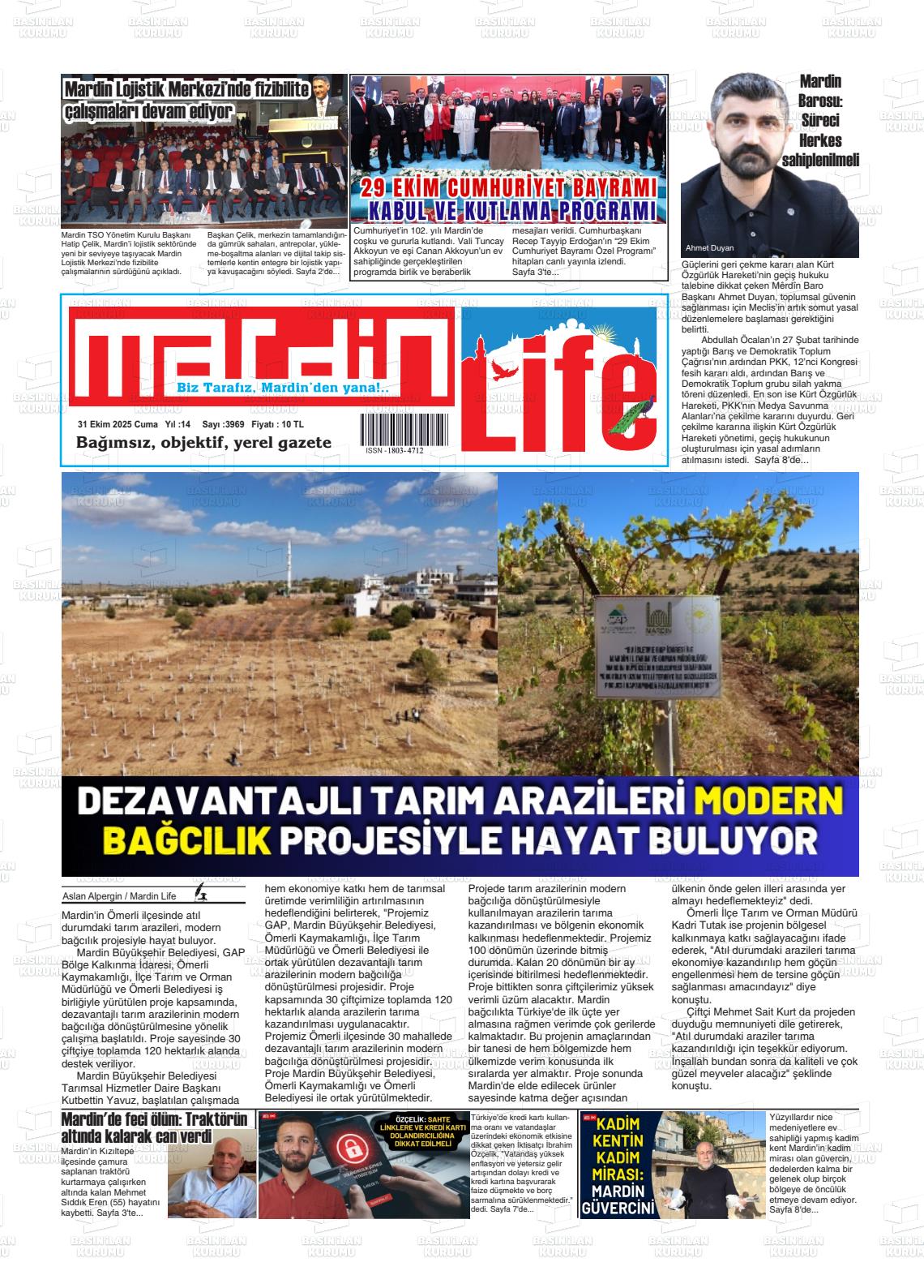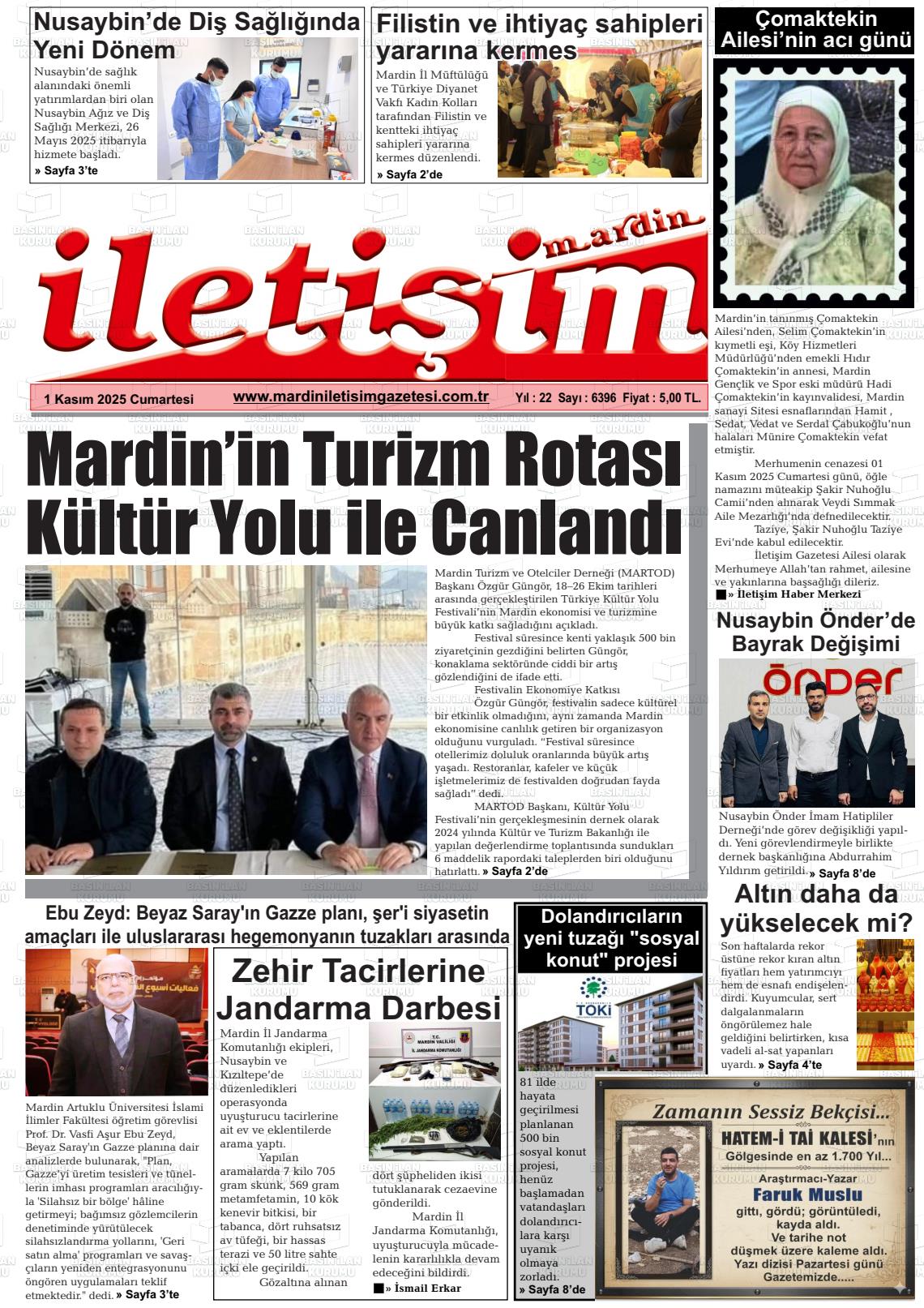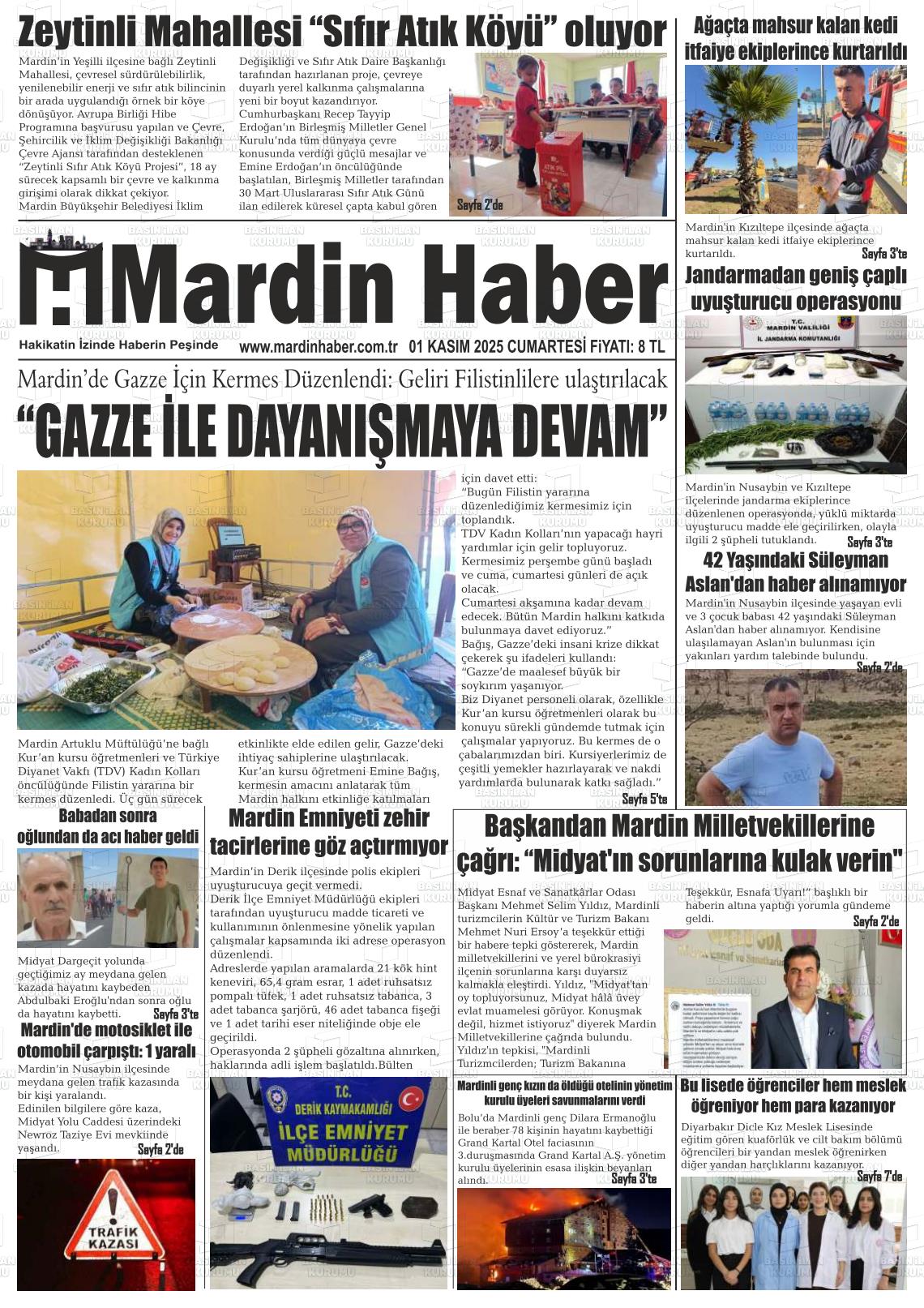 Mardİn Yerel Gazeteleri 01 Kasım 2025, Cumartesi Günü Manşeti