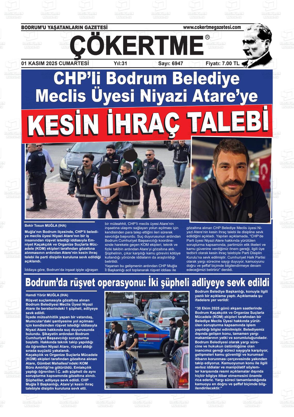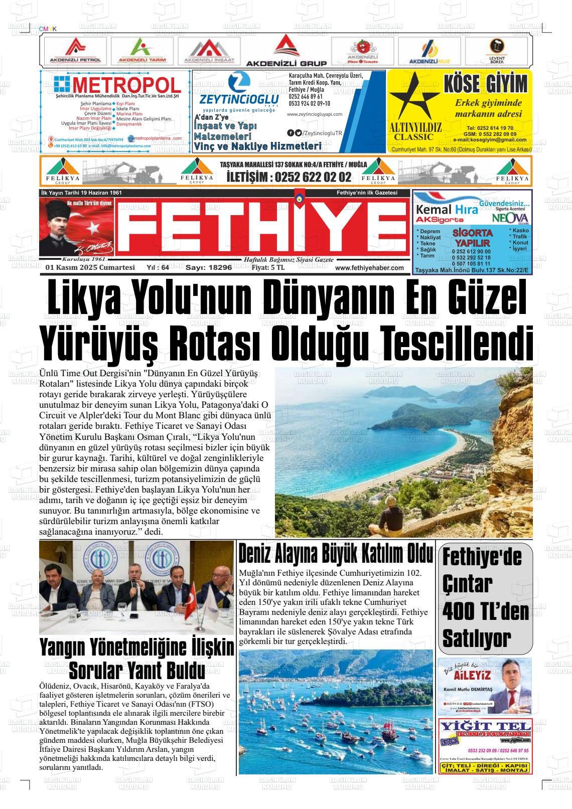 Muğla Yerel Gazeteleri 01 Kasım 2025, Cumartesi Günü Manşeti