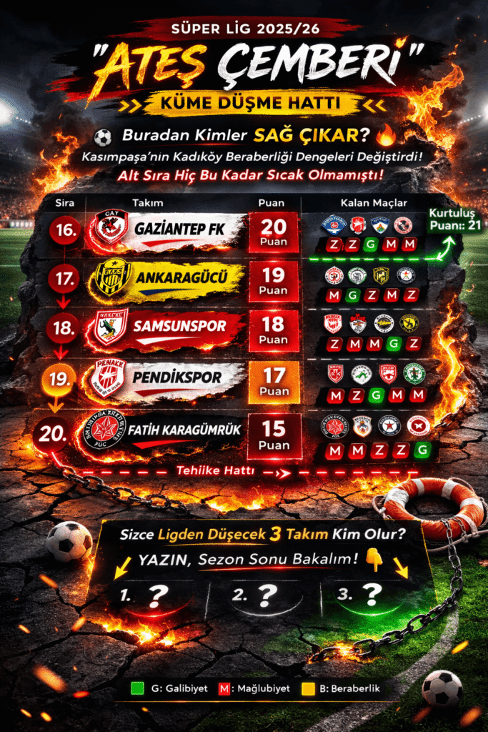 Puan tablosunun en altı, adeta bir can pazarına dönüşmüş durumda. Bu sezon ligden 3 takımın düşecek olması, alt sıralardaki stresi artırıyor.